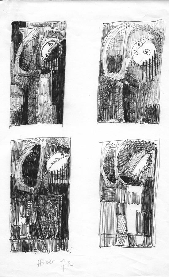 * Orant, préparations, 1972 Accueil > Dessins/Pastels/Préparations > * Orant, préparations, 1972 9 juillet 1973 Le Coultre Orant, préparations, 1972 Feutre ou stylo à bille sur papier 1. Feuille 22 x 15 cm env. 2. Feuille 21 x 15 cm env. 3. Feuille 23 x 14 cm env. 4. Feuille 24 x 20 cm env.