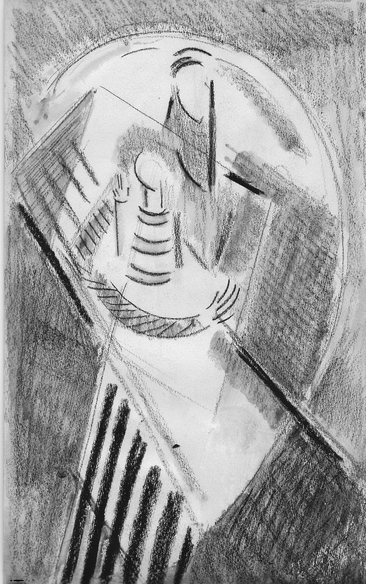 Vierge, fusain Accueil > Dessins/Pastels/Préparations > Vierge, fusain 18 novembre 1959 Le Coultre Vierge, 1955-62 (peut-être) 31 x 19 cm